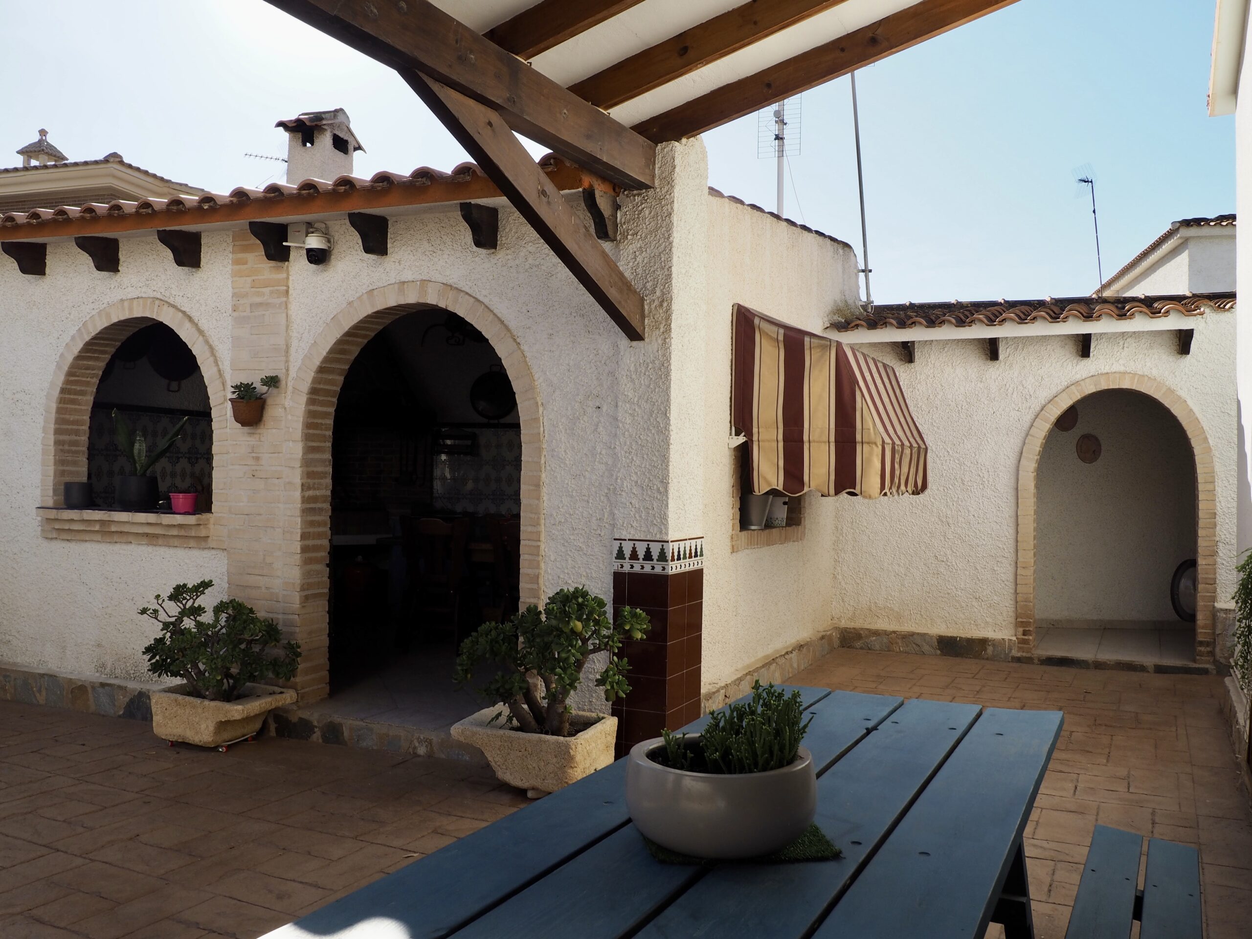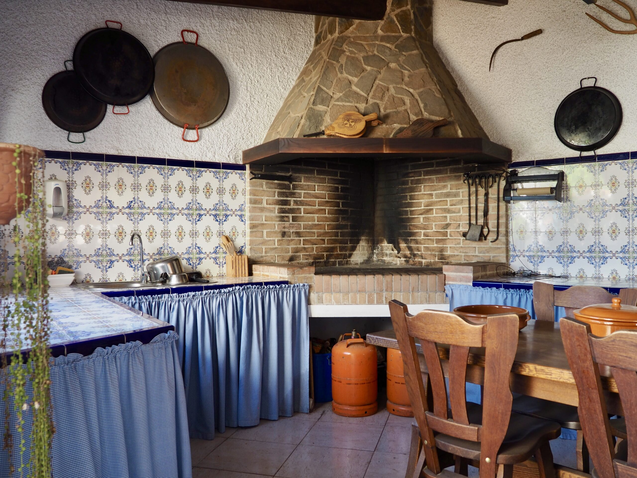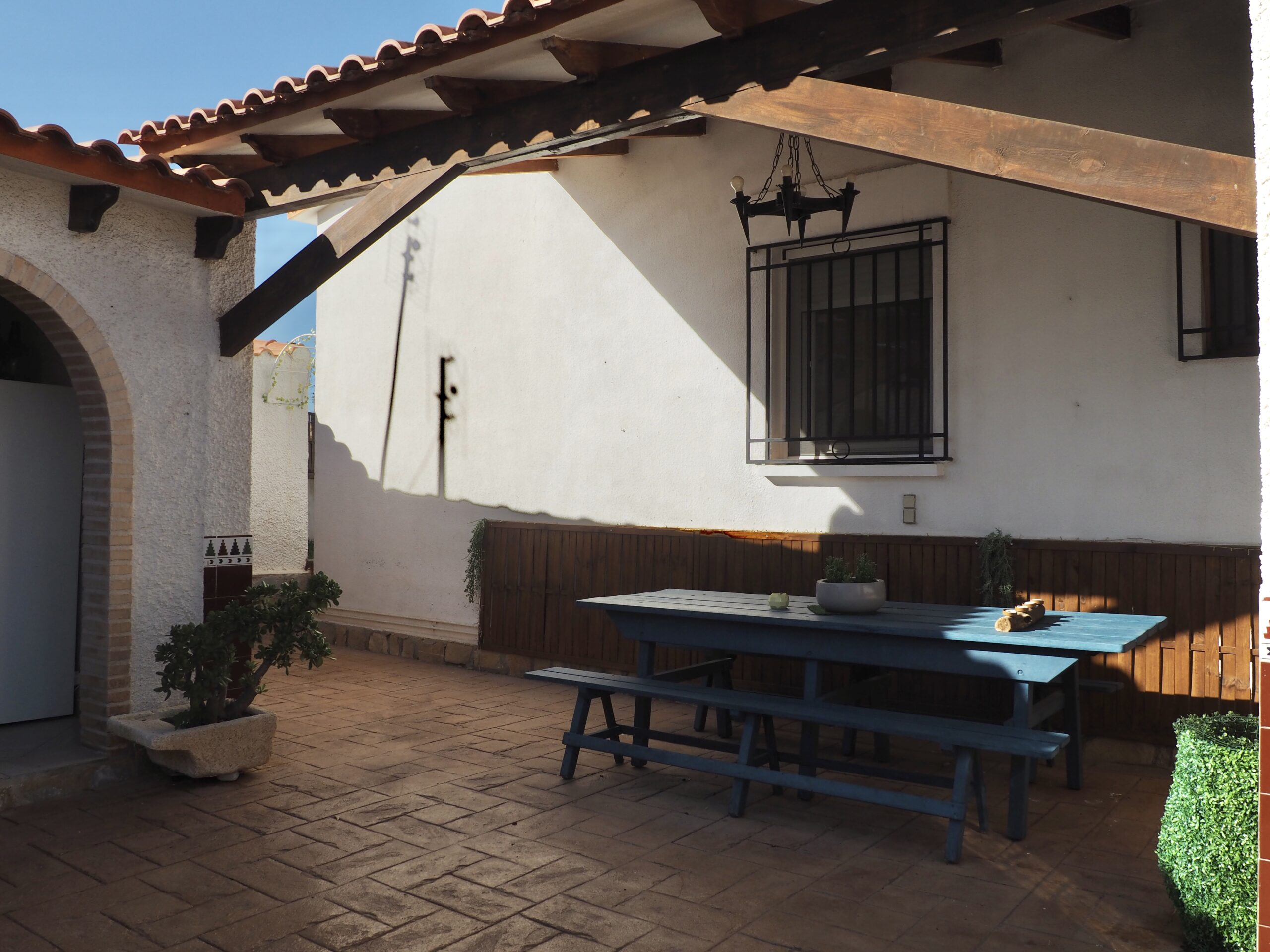 El chalet dispone de 3 dormitorios amplios más un cuarto dormitorio actualmente utilizado como vestidor, 1 baño completo, 1 aseo interior y 1 baño exterior. El salón es luminoso e incluye chimenea renovada en 2023, y la cocina, también reformada ese mismo año, cuenta con despensa independiente y armarios de cierre suave.