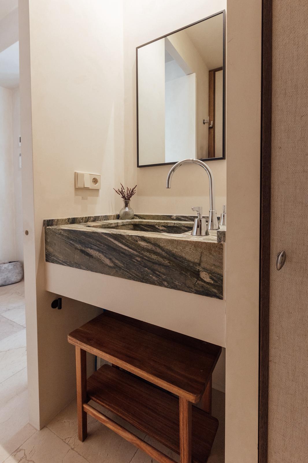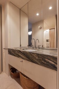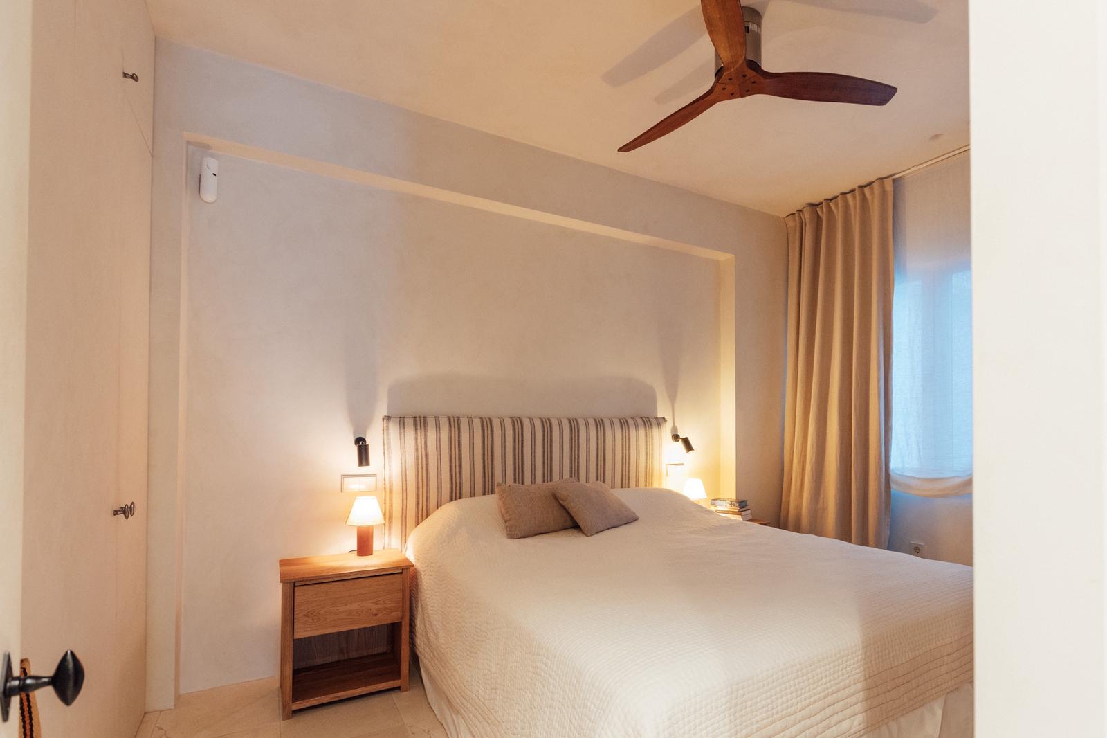 La vivienda se distribuye en dos dormitorios, ambos diseñados para ofrecer confort y tranquilidad, con una excelente iluminación natural y espacios bien aprovechados. Dispone de dos baños completos, uno de ellos en suite, con acabados actuales, sanitarios de primeras marcas y una estética elegante y atemporal.