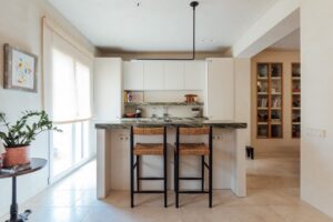 Uno de los grandes atractivos de esta propiedad es su cocina abierta al salón, un espacio diáfano que aporta amplitud, luminosidad y una sensación de hogar moderno y acogedor. La cocina, integrada de forma armónica en la zona de estar, está pensada tanto para el día a día como para disfrutar de reuniones con familia y amigos. El salón-comedor se presenta como un espacio cómodo, funcional y muy luminoso, ideal para crear diferentes ambientes.