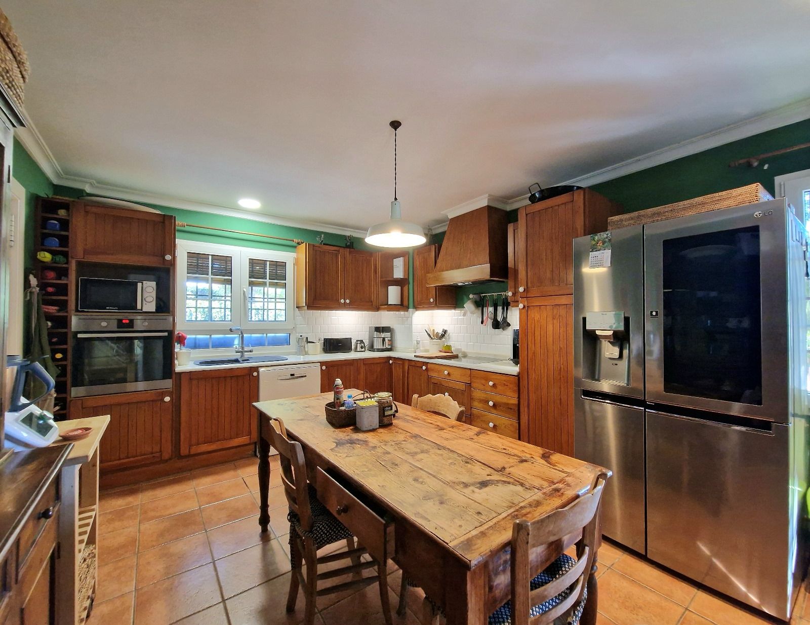 La cocina combina el estilo rústico con electrodomésticos de alta gama (Miele), una zona office integrada y mucho espacio de almacenaje.